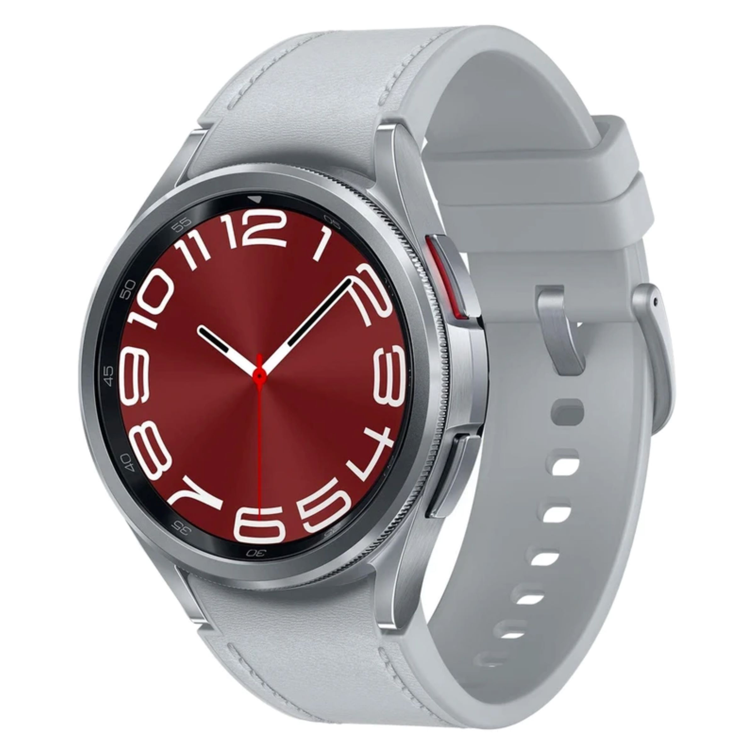 ساعت هوشمند روزمره، ورزشی و رسمی سامسونگ مدل Galaxy Watch6 Classic، سایز قاب 43 میلی‌متر، دارای بند سیلیکون، سازگار با سیستم عامل اندروید، دارای سنسورهای شمارنده ضربان قلب و سنجش اکسیژن خون، امکان تشخیص هوشمند نوع رشته ورزشی، محاسبه میزان کالری مصرفی